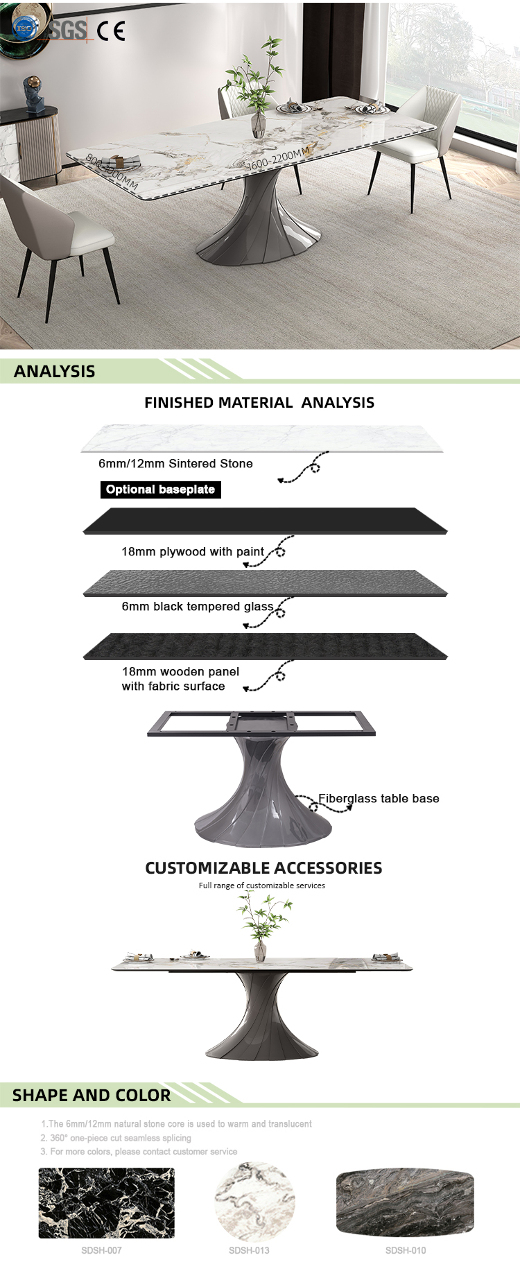 意大利轻奢岩板餐桌 Pandora 奢华玻璃纤维底座长方形石材餐桌带固定桌面
