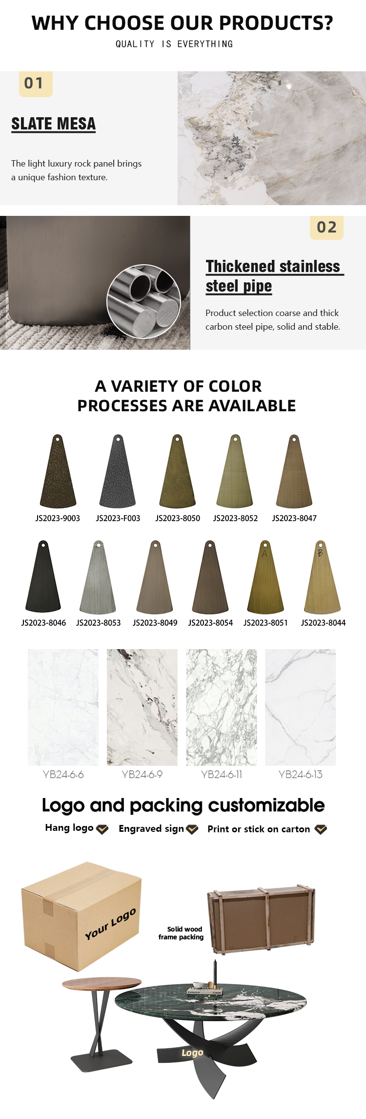 大理石桌面和金属底座;