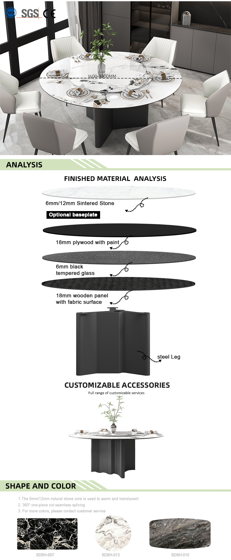 - Sanded Black Finish Table Legs ,Sintered Stone Table Top